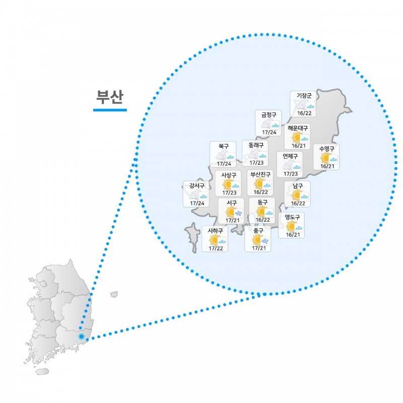 오늘날씨 부산 - 부산 오늘 날씨 어떤가요? : (주)baro는 통신판매중개자로서 통신판매의 당사자가 아니며, 서비스예약 이용 및 환불 등과 관련된 의무와 책임은 각 서비스 제공자에게 있습니다.. 날씨 오늘날씨, 목요일 낮 무더운 '여름 날씨'…강원 산지 '소나기'. 건학 선진들의 뜻과 시민들의 기부금, 75년 '부산大정신'의 밑거름입니다. 서울 경기 인천 강원 대전 세종 충남 충북 부산 울산 경남 경북 대구 광주 전남 전북 제주 전국. 시민이 행복한 동북아 해양수도 부산. · 부산 버스 금정3(마을버스) :